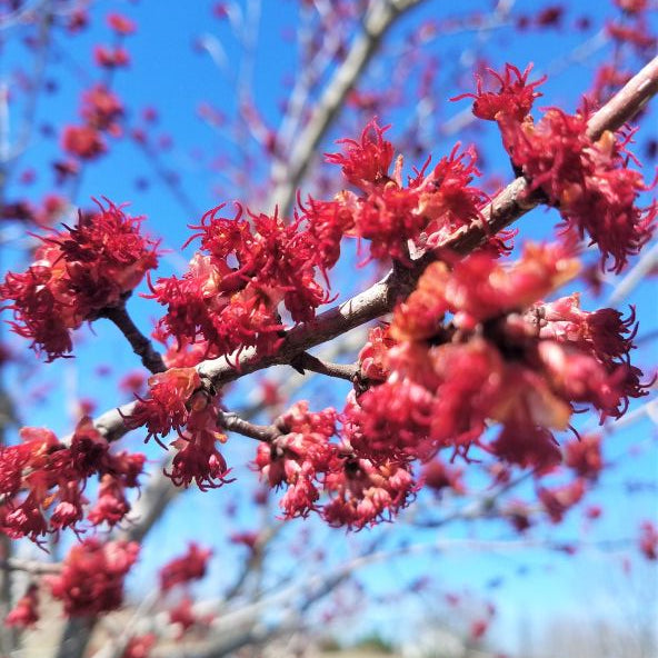 Local wildlife appreciates this native tree. Small, pretty, early spring red flowers support critical pollinators. The leaves emerge after the red flower clusters in the spring and are yellow-green and age to dark green with a silvery underside. Wide branches provide easy shelter for birds.