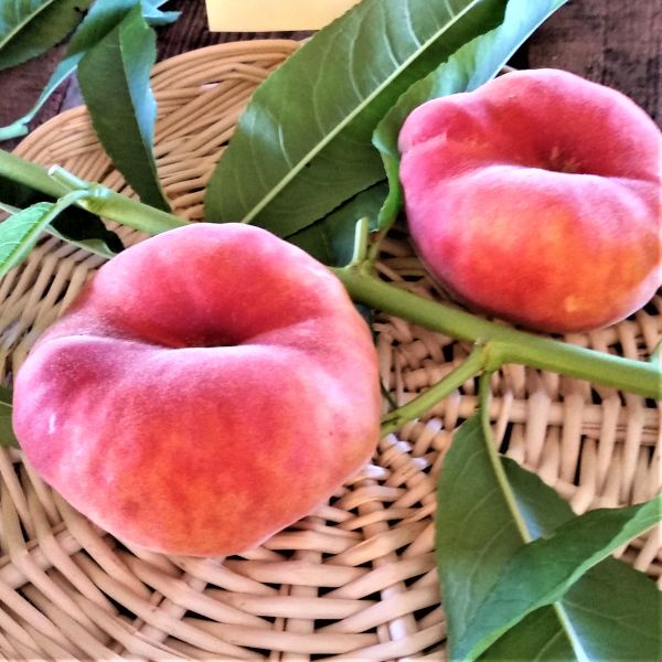 The Scarlet Halo Peach Tree (Prunus persica 'Scarlet Halo') is noted for its splendid flavor and scarlet-colored flesh. Bred for its fine, very sweet flavor and thicker size, Scarlet Halos are a late-ripening, self-fruitful variety. Also known as donut, bagel or flat peaches, these are truly unique specimens, and are amazingly ornamental, dual-purpose trees!