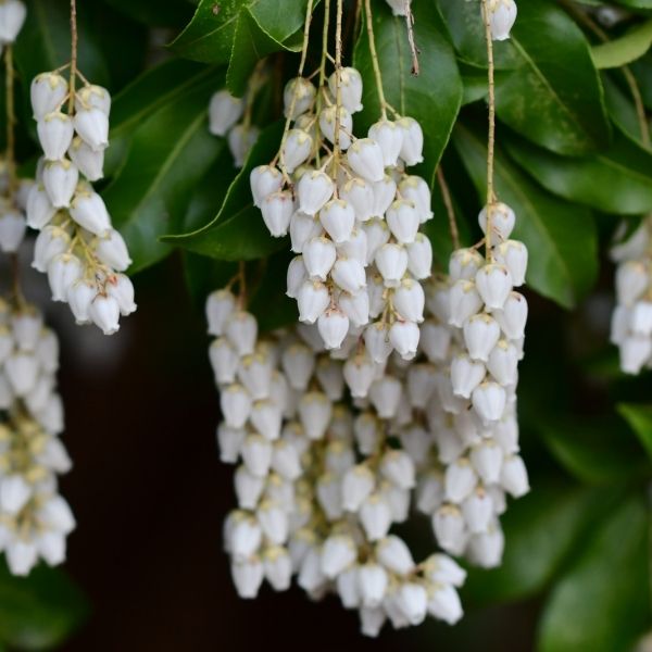 White Fragrant Bells on Evergreen Pieris Scarlet O'Hara!