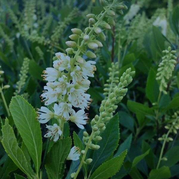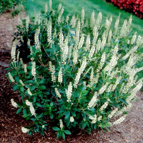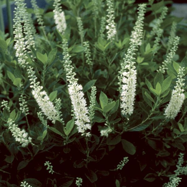 Your Sixteen Candles will amaze you with its 6-inch long spikes of delicate blossoms that reach out amid the dark green foliage in mid-to late summer. The pristine white flowers are variable in orientation, with some gently arching, upright or horizontal.