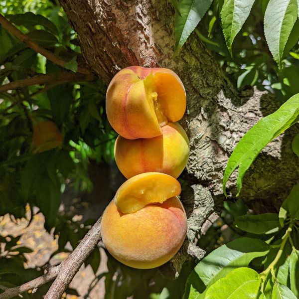 Peach Trees need full sun, so provide at least 6 hours of direct sunlight per day. Plant them in a consistently moist location that is well-drained and well mulched to prevent evaporation and insulate the roots from heat. Prune in late winter and early spring for size and to remove crossing, diseased and damaged branches.